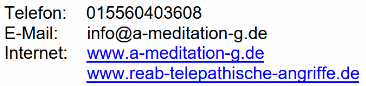 Die Einschätzung des Falls sowie die daran orientierte Beratung durch A-M-G erfolgen auf der Grundlage des augenblicklichen Kenntnis- und Erfahrungsstandes nach bestem Wissen und Gewissen. Die Beratung durch A-M-G erfolgt stets unter dem Vorbehalt, dass Krankheitssymptome dem Erscheinungsbild telepathischer Angriffe gleichen können. A-M-G übernimmt keine Haftung für die mögliche Fehleinschätzung eines geschilderten Falls.