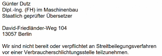 E-Mail werden nur bearbeitet, wenn dem E-Mail-Text die vollständige Postanschrift des Absenders vorangestellt wurde: