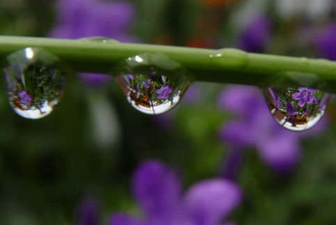 Warum ärgern wir uns so oft darüber, wenn es regnet? Jeder Regentropfen kann ein werdender Mensch sein. Wie bewusst leben wir? In einem Sprachkurs wurden wir einmal dazu aufgefordert jeder für sich vier Worte seiner Wahl in sein Heft einzutragen. Wir wussten nicht warum. Ein wenig ratlos trug ich auf Grund der Geheimniskrämerei widerwillig die vier Worte "Blume, Erde, Tür, Haus" in mein Heft ein. Dann bekamen wir die Aufgabe für die kommende Woche aus diesen vier Worten einen Postkartentext in der Fremdsprache zu verfassen, die wir erlernen wollten. Wir machten große Augen und brachen in Lachen aus. Wir hatten uns schließlich jeder selbst die vier Worte eingebrockt, die es nun zu verarbeiten galt. Hier ist meine Lösung für diese Aufgabe: